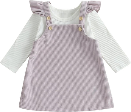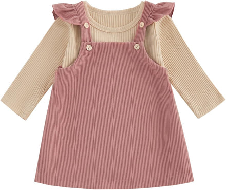 - Package included: 1*Infant baby girl corduroy dress + ribbed knit long sleeved romper top
