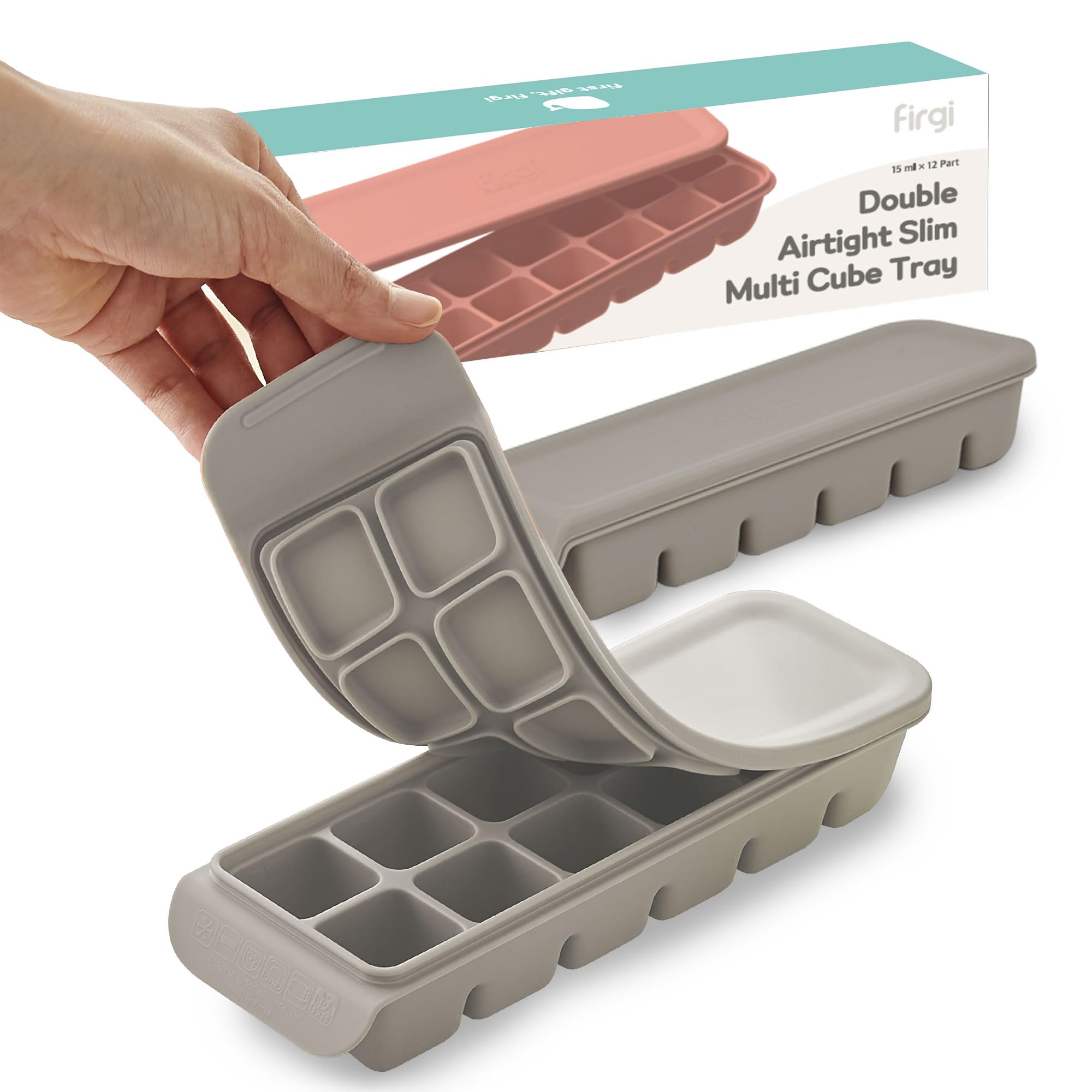 Firgi 12 Section-0.5oz, Gray 100% Food Grade Silicone Ice Cube Tray Food Container with Airtight Locking Lid, Fruit Vegetable Purees, Breastmilk Storage for Baby & Toddler Food | BPA Free Korea Made