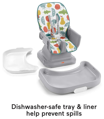 Fisher-Price Baby to Toddler High Chair SpaceSaver Simple Clean Portable Dining Seat & Booster with Washable Deep Tray & Liner, Pacific Pebble