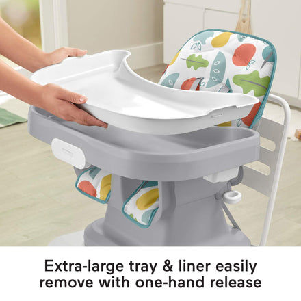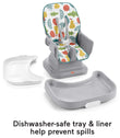 Fisher-Price Baby to Toddler High Chair SpaceSaver Simple Clean Portable Dining Seat & Booster with Washable Deep Tray & Liner, Pearfection