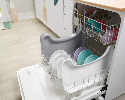 • Dishwasher-safe seat, tray and tray liner, plus machine-washable seat pad and 5-point harness