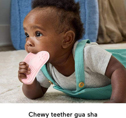 Baby can get in on the GRWM trend with this Mini Me Moments Self-Care Sensory Set from Fisher-Price. Featuring classic newborn activity toys styled as familiar grownup self-care items, this 6-piece gift set includes a rattle face roller, squeaker puff, clacker cucumber slices, chewy teether gua sha, double-sided crinkle face mask, and a spinning mirror. Little ones can “treat” themselves to engaging sensory play that also helps foster grasping, curiosity, and cause & effect. Colors and decorations may vary.