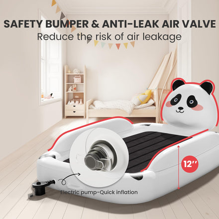 Floisdace Inflatable Travel Bed with High Speed Pump, Portable Kids Air Mattress with Safety Bumpers, Toddler Travel Bed for Trip Camping Sleeplovers, Separate Mattress Design (60"-Panda)