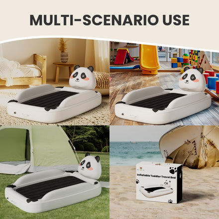 • 【UNIQUE PANDA STYLE DESIGN】Different from ordinary kids travel bed, this inflatable toddler bed with cute panda appearance gives kids a chic bed experience, smooth animal lines, cute and lovely appearance, adding a unique decorative element to the room.