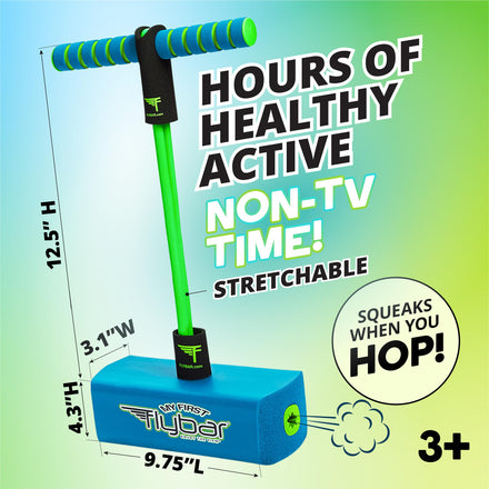 Details: The My First Flybar foam pogo stick is hours of healthy, bouncy fun. Crafted from durable foam, this is an ideal first pogo stick for kids; each jump makes a fun squeaky sound