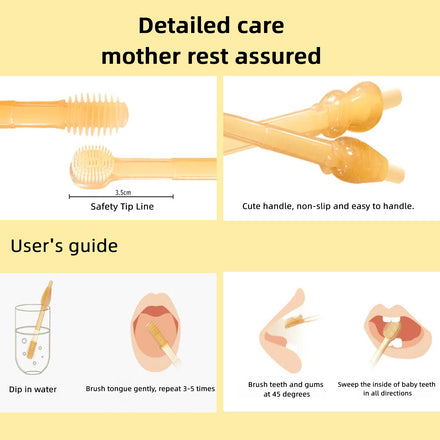 • Silicone Material for Easy Cleaning : The baby silicone toothbrush is made from high-quality silicone, which is not only safe for babies but also easy to clean . This feature makes it an excellent choice for maintaining hygiene during critical early stages of development. Whether you're looking for a baby mouth cleaner newborn or a general oral care tool, this material ensures durability and safety.