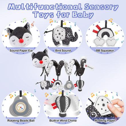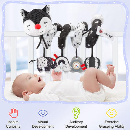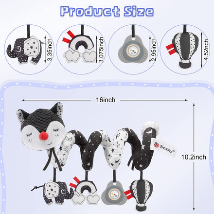 • 【Multi-use Carseat Toys】When your baby sleeps, you can put the plush fox animal toy beside your baby. The baby crib spiral toy is also suitable for entertainment at home or on the road. They can be easily wrapped around strollers, cribs, car seats, bassinet, shopping cart handles, etc