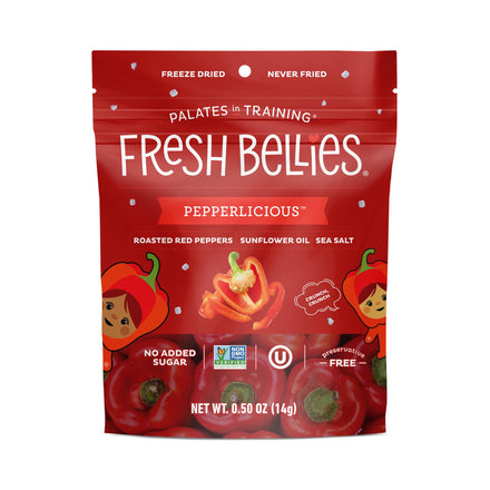 Fresh Bellies Vegan Healthy Snacks for Kids and Toddlers, Kid Snacks with No Added Sugar, Gluten Free Snacks, Freeze Dried Baby Snacks 12m+, Paleo Friendly, Non GMO, Kosher, Pepperlicious, 1 pack