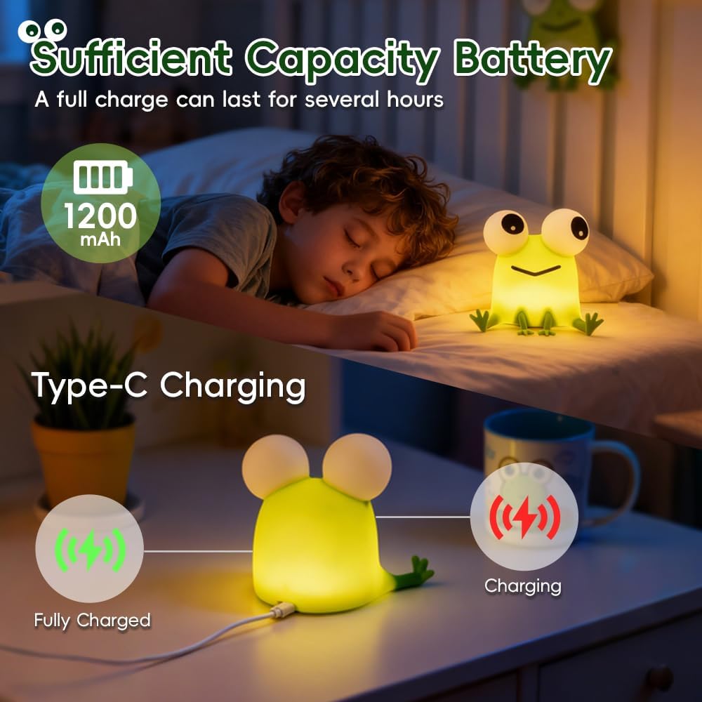 • 【Widely Applicable】This frog night light has a wide range of uses, combining practicality and ornamental value. It can be used as a night light or as a room decor. It is also rechargeable and can be used for many hours after being fully charged. It is easy to carry for camping, traveling, and other outdoor needs