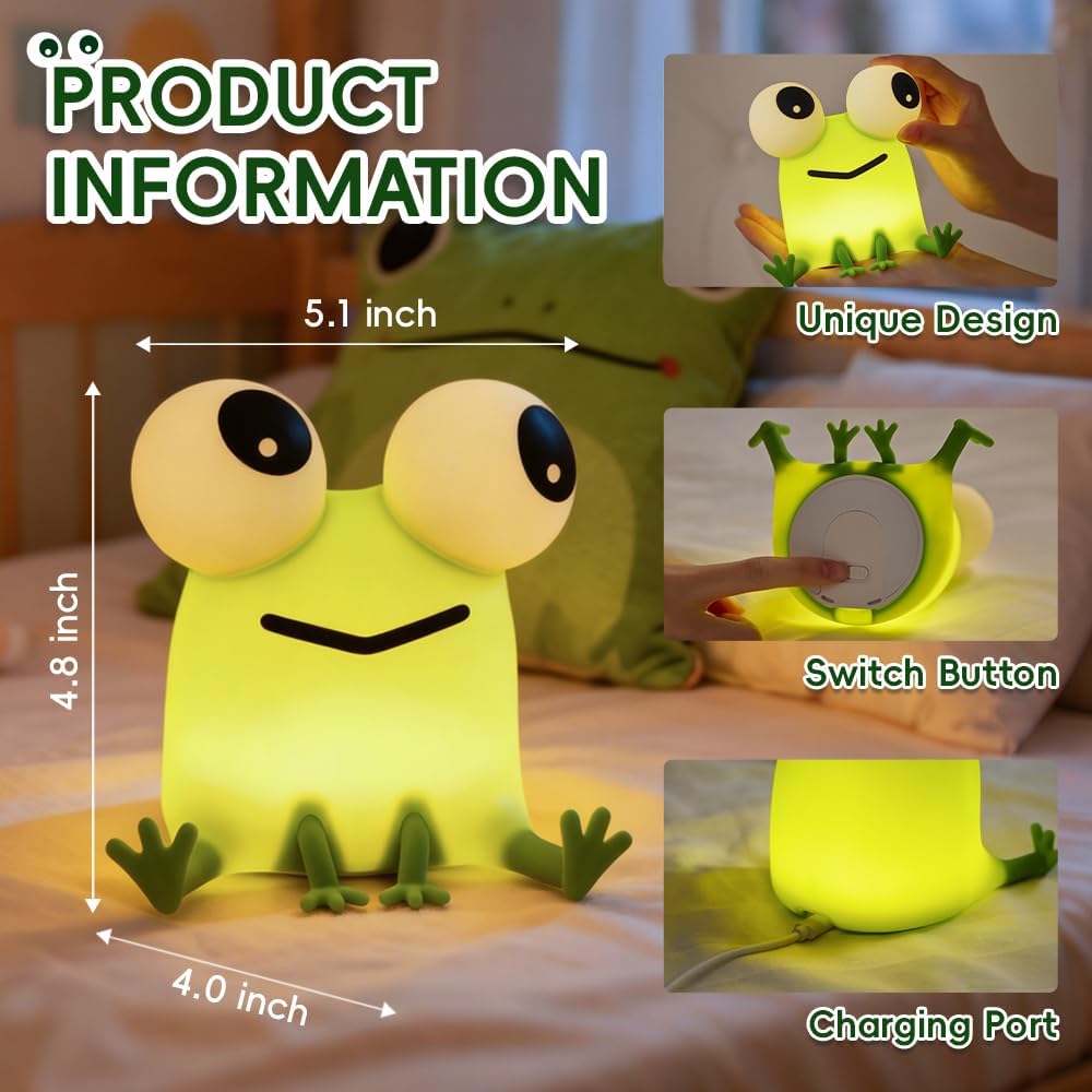 • 【Exquisite Packaging】This frog night light comes in attractive packaging, including a charging cable and instructions. It's an ideal gift for family, friends, and kids for Halloween, Christmas, New Year. It's a perfect decor for boys room, nurseries, camping, parties