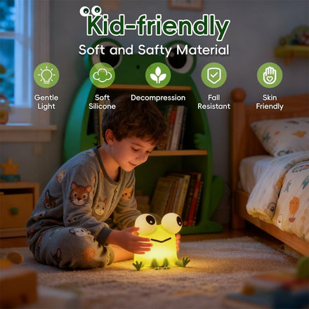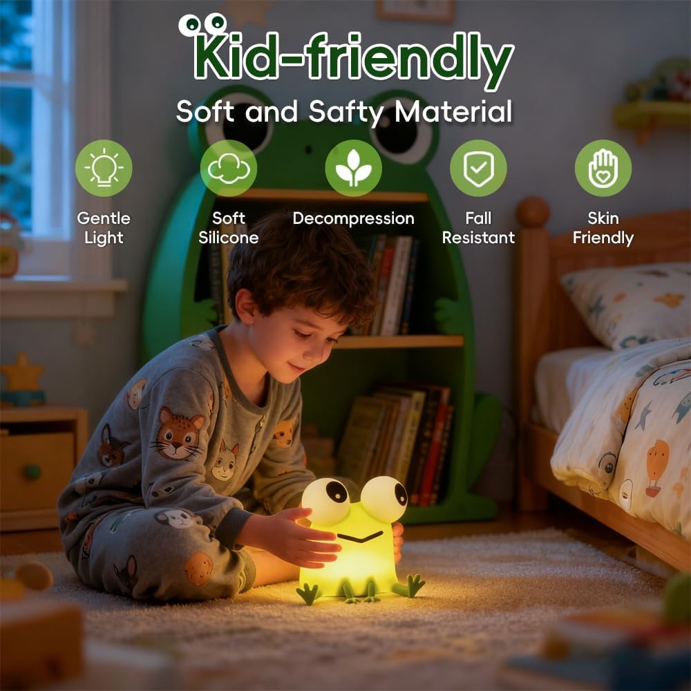 • 【High-quality Material】This frog night light is made of safe and soft silicone. The material is thick and durable, with a good ability to withstand collisions and falls. This frog lamp uses a soft and comfortable light source, without worrying about eye irritation, making it a suitable sleep companion for adults and children