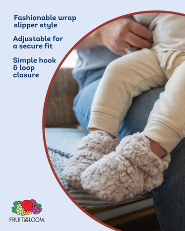 Fruit of the Loom Cozy Thermal Wrap Booties with Non-Slip Grips for Baby & Toddler Girls, Boys, Unisex - Oatmeal Sherpa (12-18 Months)