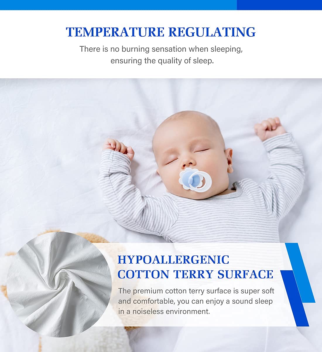 • 【Noiseless & Comfortable 】The terry surface allows air and heat to pass through, ensuring softness and great breathability. The specially designed waterproof TPU membrane is made of quality elastic material that is ultra-soft and flexible, and will not cause the rubbery, swishing sounds that other full size mattress protector may do.