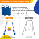 • 【4 Sandbags & Upgraded Belt, Much Safer】Safety is very important when children play. That's why we strive to make our kids swing sets safer! Our swing set for toddlers comes with 4 sandbags, each sandbag can hold up to 11lb, you can put sand, rock, or bottled water in it, and attach them to the swing foot, which strengthens the stability of the swing to prevent tipping, sturdy and safe enough for your elder kids to play, which liberate parents' hands. Moreover, We have upgraded the seat belt to make it more durable and wear-resistant, giving your kid better protection during play.