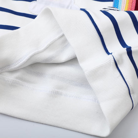 • Features an eye-catching embroidered rainbow with smiling clouds on a striped background,adding a vibrant and playful touch to your toddler girl's wardrobe.The design is both cute and cheerful,perfect for brightening up any outfit.