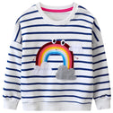 Funnymore Toddler Girl's Sweatshirt Long Sleeve Shirt Clothes Spring Fall Winter Crewneck Pullover Sweater Outfits Top Clothing Navy/White Stripe Rainbow 5t