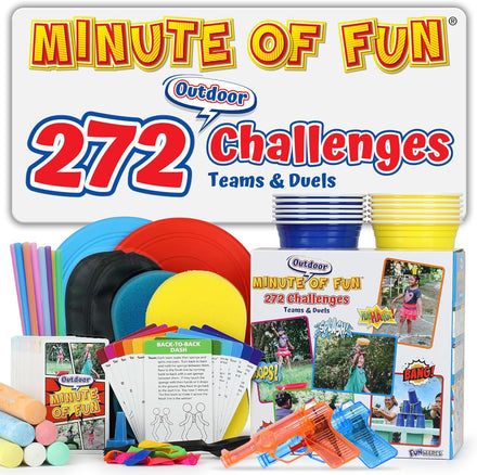 Funwares Minute of Fun Game - Minute to Win It Games for Kids, Adults, Teens, Families, Game Night, Gift for Home, Birthdays, or Travel. 2-12 Players! Outdoor - 272 Challenges