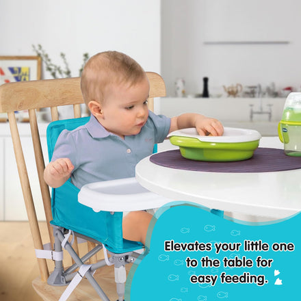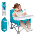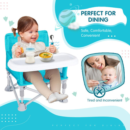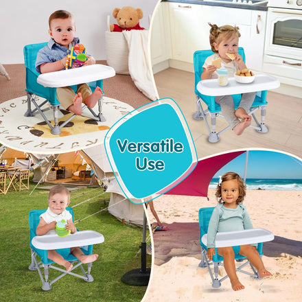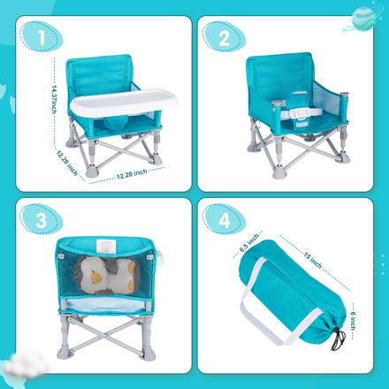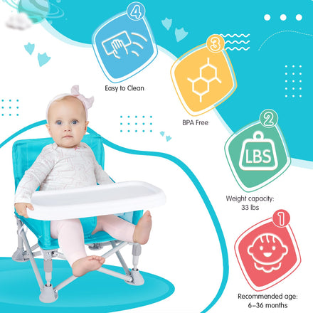 Furmubei Portable Baby Booster Seat with Tray, Toddler Booster seat for Dining, Camping, Travel, Baby Beach Chair 6 Months to 3 Years Old Indoor Outdoor Use Cyan