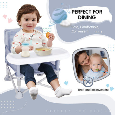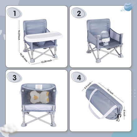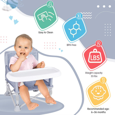 Furmubei Portable Baby Booster Seat with Tray, Toddler Booster seat for Dining, Camping, Travel, Baby Beach Chair 6 Months to 3 Years Old Indoor Outdoor Use Grey