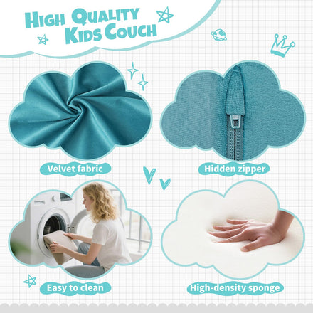 - Easy to Clean: This modular kids' play sofa features washable, removable velvet covers that resist spills, fading, and shedding. The covers are machine washable in cold water and tumble dry on low—restoring them to like-new condition after every wash! Crafted from durable fabric to withstand daily play, it's especially suited for little ones who love to explore