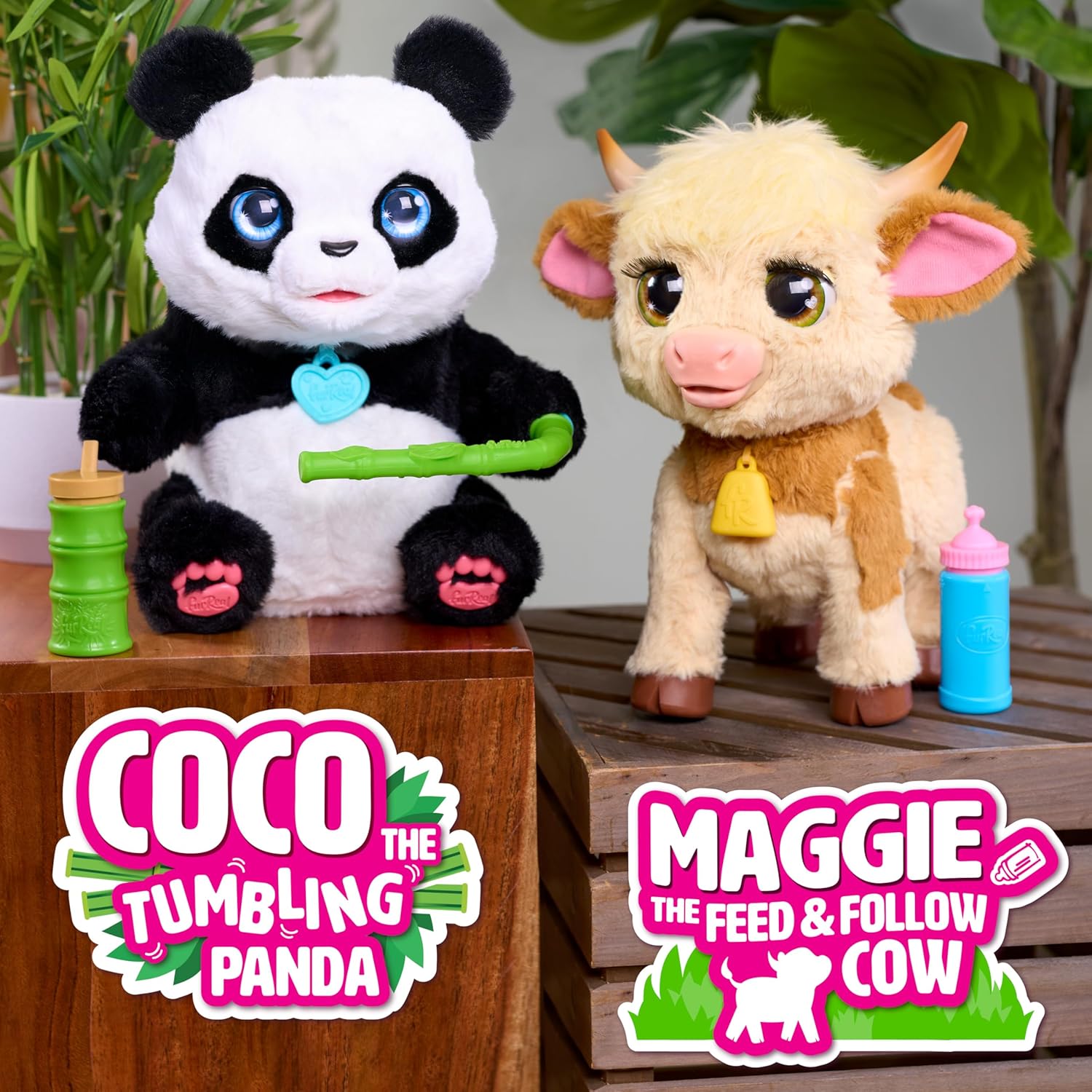 • Mini Cow, Maximum Giggles: Get ready for super-soft, farm pet fun with furReal Maggie the Feed & Follow Cow interactive plush toy.