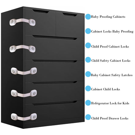 • Supreme Quality ABS Material Child's Safety Locks: Baby proofing safety cabinet locks are made of ABS material which is very durable it can long time use, our cabinet door locks have a smooth smooth surface and no burrs, so it won't hurt your baby's fingers no matter your baby how to play it