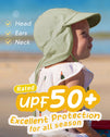 • Toddler Sun Hats is multi-seasonal and can be used in any season and any occasion.With UPF 50+ protection,the infant hat with extra back coverage blocks 98% of UV Rays in summer;When it is cool in the early morning or at dusk,your little ones need them to keep warm;Our toddler hat has a 6.3 cm brim and extra back coverage, protecting your baby's delicate skin from sunlight or cold blast while your baby looks super cute