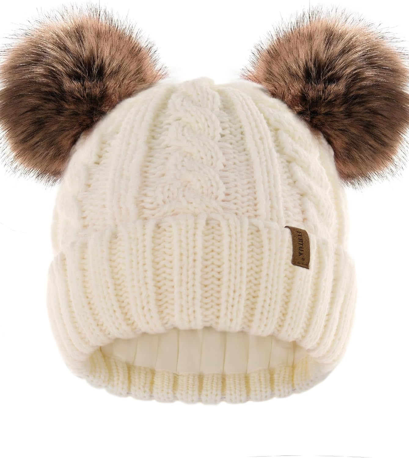 FURTALK Toddler Warm Winter Hat Kids Baby Knitted Soft Beanie with Double Faux Fur Pom Poms for Girls Boys