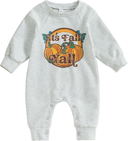 Fall Baby Boy Girl Clothes Its Fall Yall Pumpkin Jumpsuit Rompers Newborn Onesie My First Halloween Thanksgiving Baby Outfit. Its Fall Yall Jumpsuit One Piece Outfit, Daddy & Mommy's Little Turkey Jumpsuit & Hat Outfit, My 1st Halloween Onesie Outfit & Hat, Gobble Onesie Thanksgiving Outfit Unisex Newborn Boy Girl Fall Clothes Pumpkin Turkey Long Sleeve Jumpsuit Romper Onesie Cute Halloween Thanksgiving Baby Outfit Chic and stylish design '' Its Fall Yall Pumpkins '' print baby coverall jumpsuit romper long sleeve one-piece outfit halloween thanksgiving baby clothes Great for halloween baby outfit, my first halloween baby girl boy outfit, my first thanksgiving baby girl boy outfit, themed party costumes, photo shoot, baby pumpkin patch outfit, fall/halloween baby shower, birthday gift, coming home outfit etc. Suitable for unisex newborn infants baby boys and girls 0-3 month 3-6 month 6-9 month 9-12 month 12-18 month. Would be a great gift for your granddaughter, niece/ nephew..