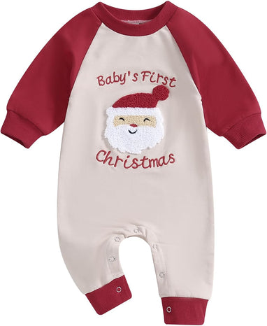 FYBITBO Infant Baby Boy Girl Clothing Santa Long Sleeve Jumpsuit Romper Newborn First Christmas Outfit One Piece Clothes