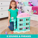 Play inside your own dollhouse world with Gabby’s Dollhouse Purrfect Dollhouse! Standing over 2ft. tall, this fantastical kids dollhouse is packed with exciting features to discover, including a Dollhouse Delivery tower, working Cat-A-Vator, sounds and so much more! With a 3.5-inch Gabby Girl collectible figure, Pandy Paws figure, furniture for each room, three accessories and two Dollhouse Deliveries, you can get straight to the fun right out of the box. Just like in the show, drop a delivery in the tower and press the button to retrieve it – unbox it to find a surprise accessory inside! Open the dollhouse and press the button on the front to hear songs, sounds and phrases from the show! With so many rooms and surprises to explore, use your imagination to play out endless adventures with Gabby and her best pal Pandy Paws. Relax on the music room’s colorful couch and open the door on the tree to reveal a guest on the room’s backdrop. Hungry? Flip the table in the kitchen to turn it from breakfast to dinner! Take a ride in the Cat-A-Vator and slide it up to reach each floor. Help Gabby wash her hands at the bathroom sink or find a colorful surprise in the toilet; let Pandy Paws get some rest under the play tent in the bedroom; get creative on the craft room’s easel and have fun on the playroom’s slide. When you reach the top floor, flip the roof back and play in the attic! Add more rooms to your toy house with the Deluxe Rooms (each sold separately) – slide the rooms directly into the dollhouse’s walls! For easy storage after a fun-filled day of pretend play, Gabby’s Purrfect Dollhouse can close up with or without the Deluxe Rooms inside. This dollhouse is the ultimate gift for kids aged 3 and up. For one last surprise, scan the QR code inside one of the Dollhouse Deliveries to unlock a special reward in the free Gabby’s Dollhouse App (available on iOS and Android). Bring the magic of Gabby’s Dollhouse to life with Gabby’s Purrfect Dollhouse!