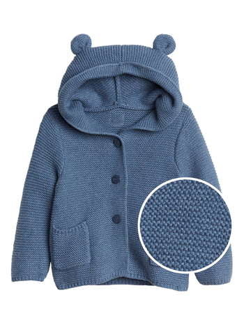 • THE BEARY CUTEST CARDIGAN EVER: Made to keep your newborn or baby warm and comfortable all day, this knit sweater features adorable bear ears on top