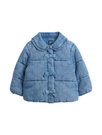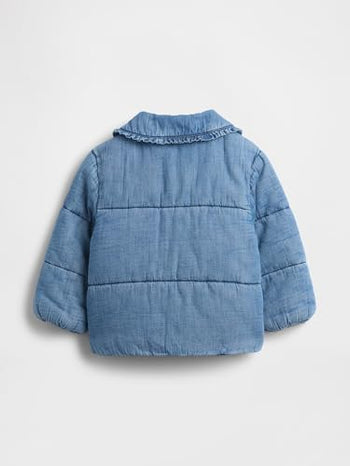 GAP Baby Girls Denim Puffer Jacket Light Wash 6-12M