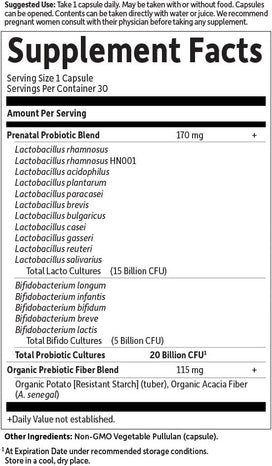 • DOCTOR FORMULATED PROBIOTICS FOR DAILY DIGESTIVE AND IMMUNE SUPPORT: Once Daily Prenatal Probiotic provides 20 Billion CFU and 16 Probiotic Strains plus Prebiotic Fiber, for probiotic and prebiotic support during pregnancy and lactation