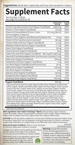 Garden of Life Organics Prenatal Once Daily Multivitamin is a Certified Organic, Non-GMO Project Verified, NSF Gluten-free, Vegan and Kosher prenatal multivitamin formula made from whole foods, free from synthetic binders and fillers. One daily tablet promotes healthy fetal development with 100% DV of Folate from Organic Lemon Peel and Vegan D3 from Lichen.† Mom also gets energy support with over 100% daily value of all B complex vitamins, including vitamins B6 and B12.† With our Clean Tablet Technology™, our tablets are easy-to-swallow and dissolve in less than 30 minutes, ensuring high bioavailability. Adults take 1 tablet daily with food. †These statements have not been evaluated by the Food and Drug Administration. This product is not intended to diagnose, treat, cure or prevent any disease.