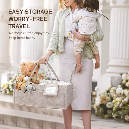 - LIGHTWEIGHT & PORTABLE for ON-THE-GO PARENTS: Our baby organizer designed with sturdy handles compact design, this diaper caddy organizer with handle is easy to carry from room to room or take along in the car as a car organizer. Making it ideal for travel, park visits, or trips to grandma’s house. Perfect for keeping diapers, wipes, and baby essentials organized wherever you go.