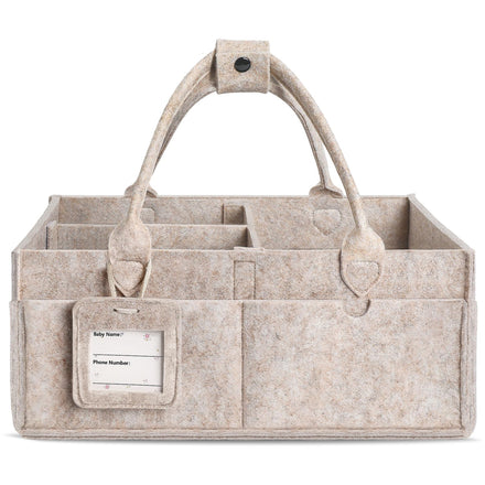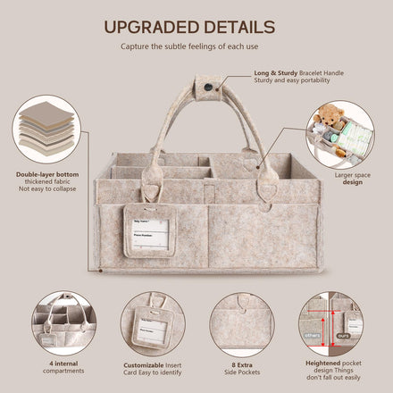 - PERFECT SIZE & ADJUSTABLE DIVIDERS: Our changing caddy is perfect to store baby items by size 16.5"L*10"W*7.1"H. This baby tote designed with removable dividers. With multi compartment, you can organize baby essentials such as diapers, wipes, lotions, bibs, onesies, baby toys, cloth diapers, changing pads and more, A compartment specially designed for baby bottles, which will not tip over once placed inside. Large enough for baby necessities or baby nursery essentials.