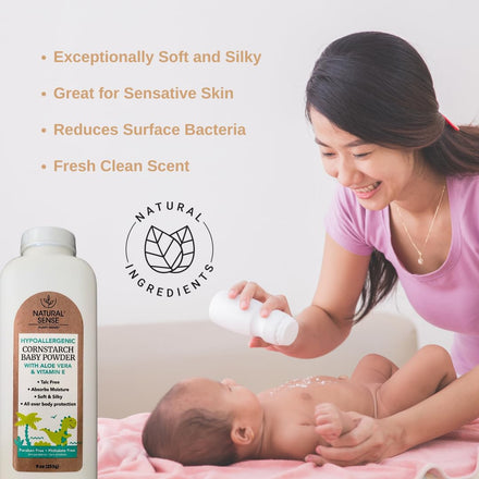 Generic Natural Sense Hypoallergenic Cornstarch Baby Powder with Aloe Vera & Vitamin E, 9oz (255g)