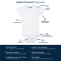 Your little boy will start the day looking his best dressed in one of these Gerber Onesies brand short sleeve bodysuits! Moms and dads will appreciate the higher-in-the-front bottom nickel-free snaps closure that makes for fast and easy diaper changes. 100% cotton rib for breathability and comfort. Mix and match with your favorite bottoms to create a complete look. An essential item for new parents, great for gift giving.