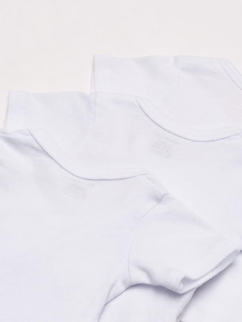 Gerber short sleeve side snap shirts are great as a layering piece, made of 100 percent cotton for comfort and softness, designed with snaps on the side for no-fuss dressing because they do not have to go over baby's head, 3 pack white available in sizes newborn and 0-3 months, machine wash and dry, great item for gift giving