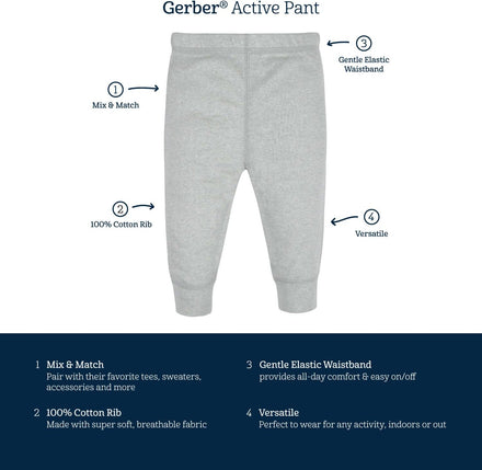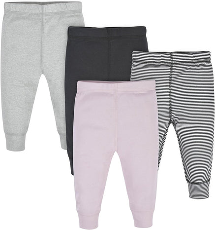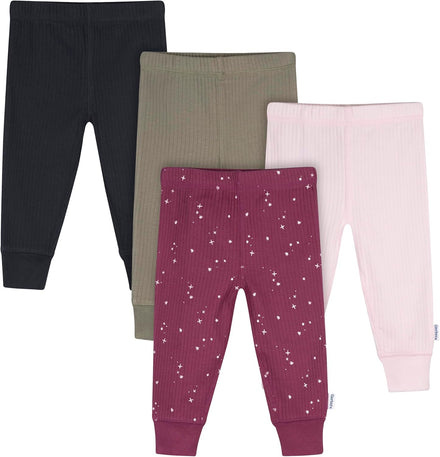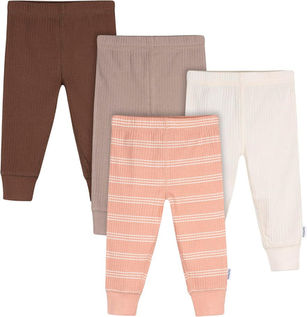 This 4-pack of baby active pants is designed for all-day comfort and play! Made primarily from soft cotton with a hint of spandex, they offer a flexible fit that moves with your little one. The comfort-stretch waistband makes dressing quick and easy, while cinched ankles keep the pants securely in place, no matter how much they wiggle and explore. A touch of vertical ribbing adds subtle texture and style, making these pants as cute as they are practical. Perfect for pairing with bodysuits or t-shirts, they’re a must-have for everyday wear!