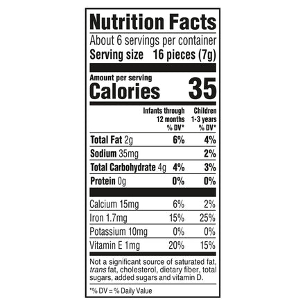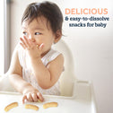 • Meltable texture and ideal size help toddlers chew and swallow easily and practice picking up items