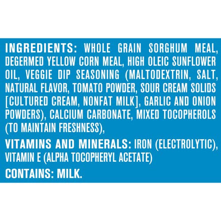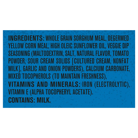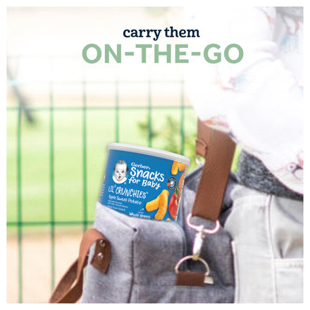 Details: Make every little bite count with a snack designed just for your older baby with Gerber Lil Crunchies Veggie Dip Baked Corn Baby Snacks. These Gerber baby snacks come in a delicious veggie dip flavor for new taste combinations your little one can experience. Each serving of non-GMO baked snacks is made with 5 grams of whole grains and 20% daily value of vitamin E. They never contain any artificial flavors or artificial colors. These Gerber snacks have a meltable texture that dissolves easily and is easy to chew and swallow. Perfectly sized for older babies learning to pick things up, these baby food snacks are an ideal finger food for teaching crawlers to self-feed. Serve these snacks to seated, supervised babies who are used to chewing solid foods. Use within five days of removing the seal from this reclosable container for optimal freshness.