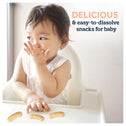 • Meltable texture and ideal size help toddlers chew and swallow easily and practice picking up items