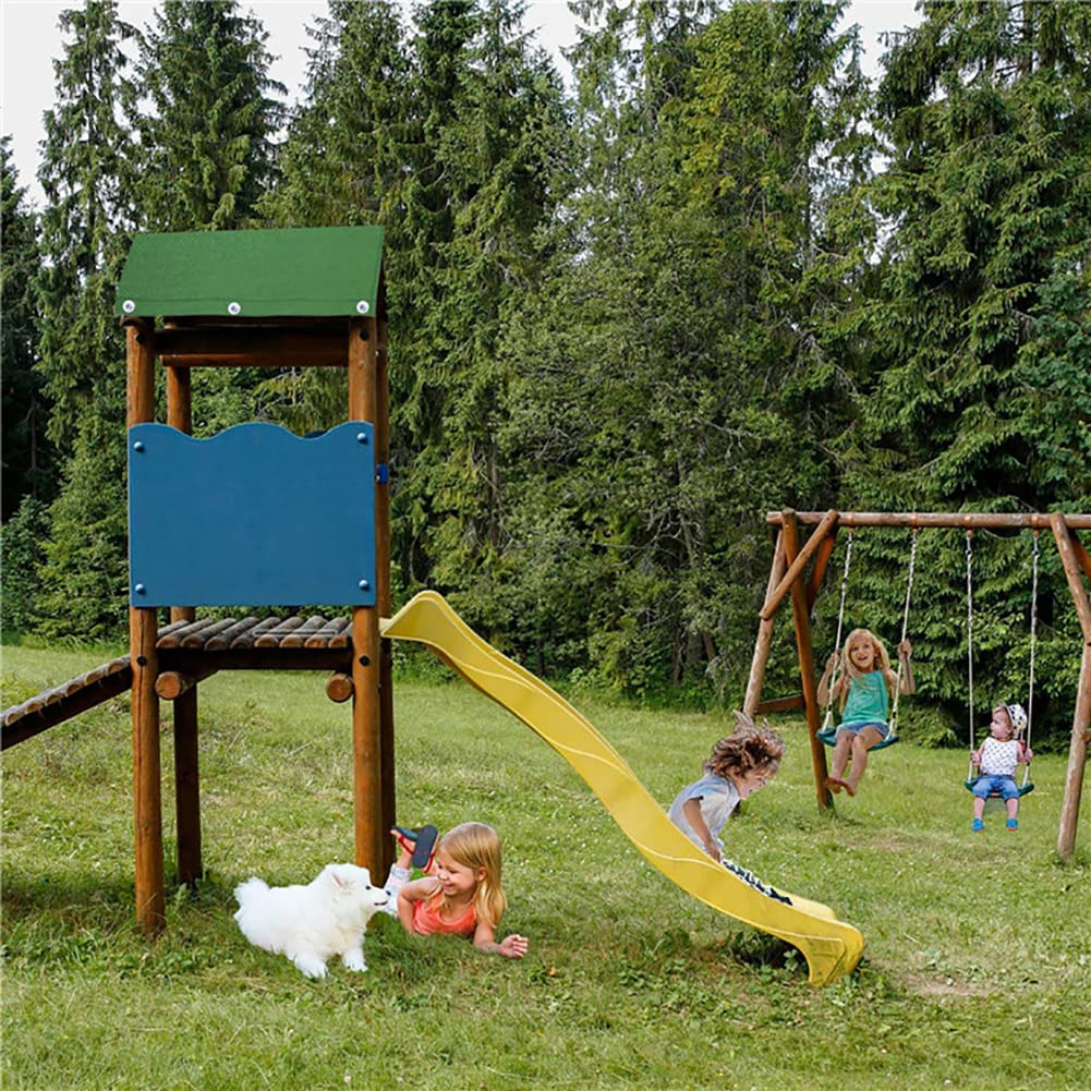 - Swing set replacement tarp made of 600D waterproof fabric and coated with PVC, which can improve the waterproof level of the cover, prevent the kids playground from getting wet in rainy days, keep the kids playground dry, and prevent children from falling due to water.