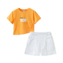 Girl Letter Print T-Shirt Combo Solid Color Shorts 2-Pieces Sets