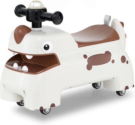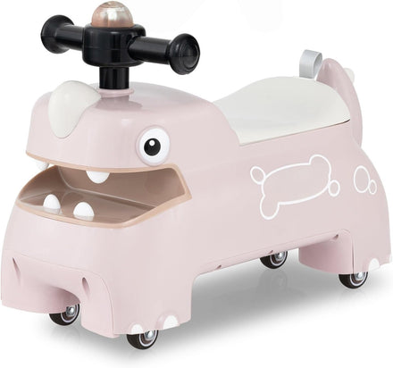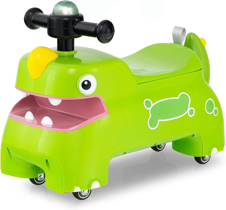 Description: This ride on toy is perfect for toddlers aged 18 months and up, bringing endless joy to little ones! Dinosaur themed foot to floor sliding car design with rounded contours, soft lines, and vibrant colors, it instantly captures children's attention. Smooth wheels allow effortless gliding across living rooms, balconies, small yards, and neighborhood paths—seamlessly transitioning between indoor and outdoor play. A low center of gravity and wide base provide stable support for your little one, while thoughtful anti-tip protection at the rear of the seat ensures peace of mind with every step. A hidden storage compartment beneath the seat conveniently holds building blocks, toy cars, or snacks. As children pedal, their calf muscles work steadily, quietly enhancing balance while imagination blossoms amidst engine sounds and light effects. Place this gift in your child's hands and let joy and growth set off together. Features: Dinosaur themed ride on toy with adorable design beloved by children Pressable teeth interactive feature for added fun Play with sound and light feedback helps children develop cause and effect understanding Hidden storage compartment under seat combines aesthetics with practicality Quiet & wear resistant wheels glide smoothly over various surfaces Low center of gravity with a comfortable seat ensures safe and enjoyable riding Lightweight and portable for easy handling by parents ASTM and CPSIA safety compliant, suitable for children 18 months and older Requires simple assembly before use Specifications: Color: Green/Pink/White/Yellow Material: PP, ABS, Metal Product Dimensions: 20.5” x 9” x 15” (L × W × H) Seat Height: 9” Net Weight: 4.4 lbs Weight Capacity: 55 lbs Suitable Ages: 18+ Months Old Package Includes: 1 x Ride on Toy 1 x Instruction