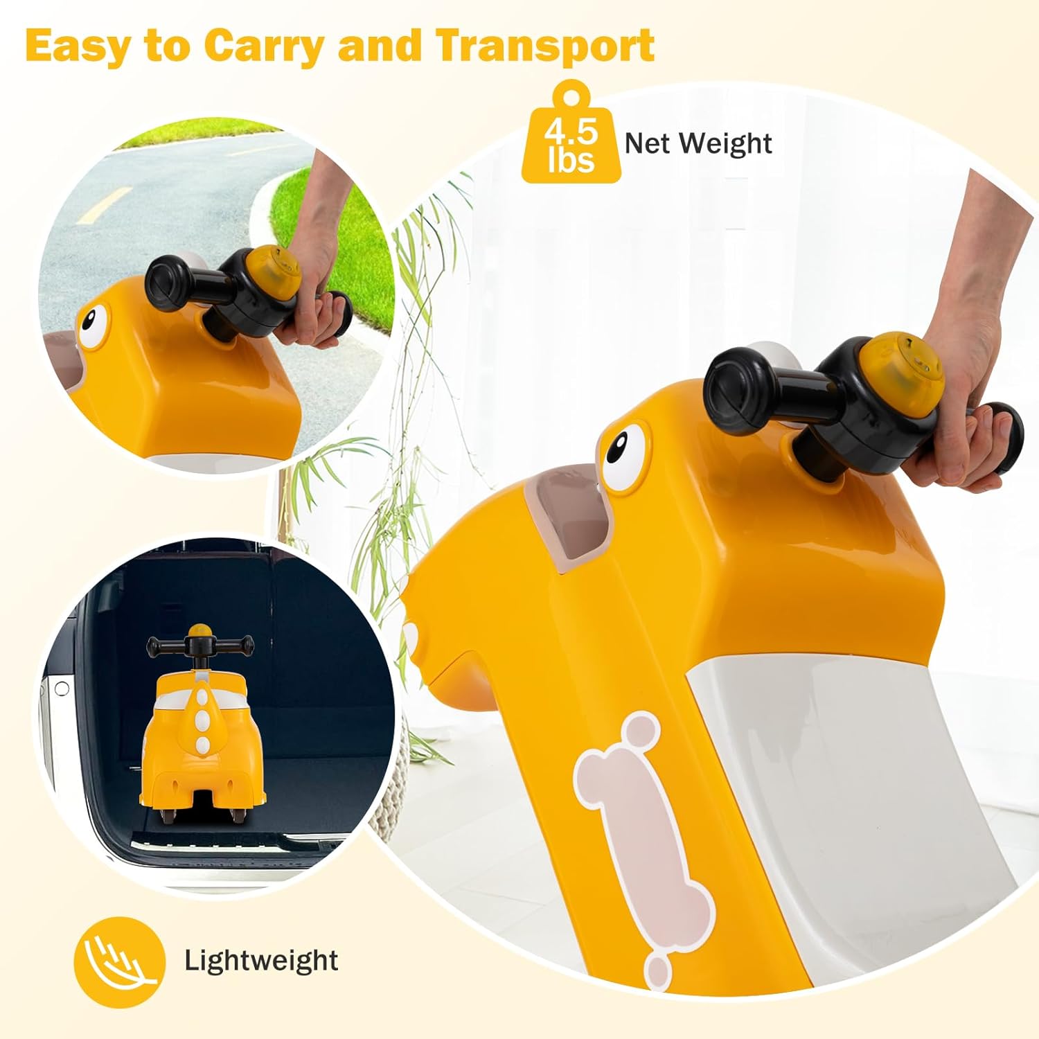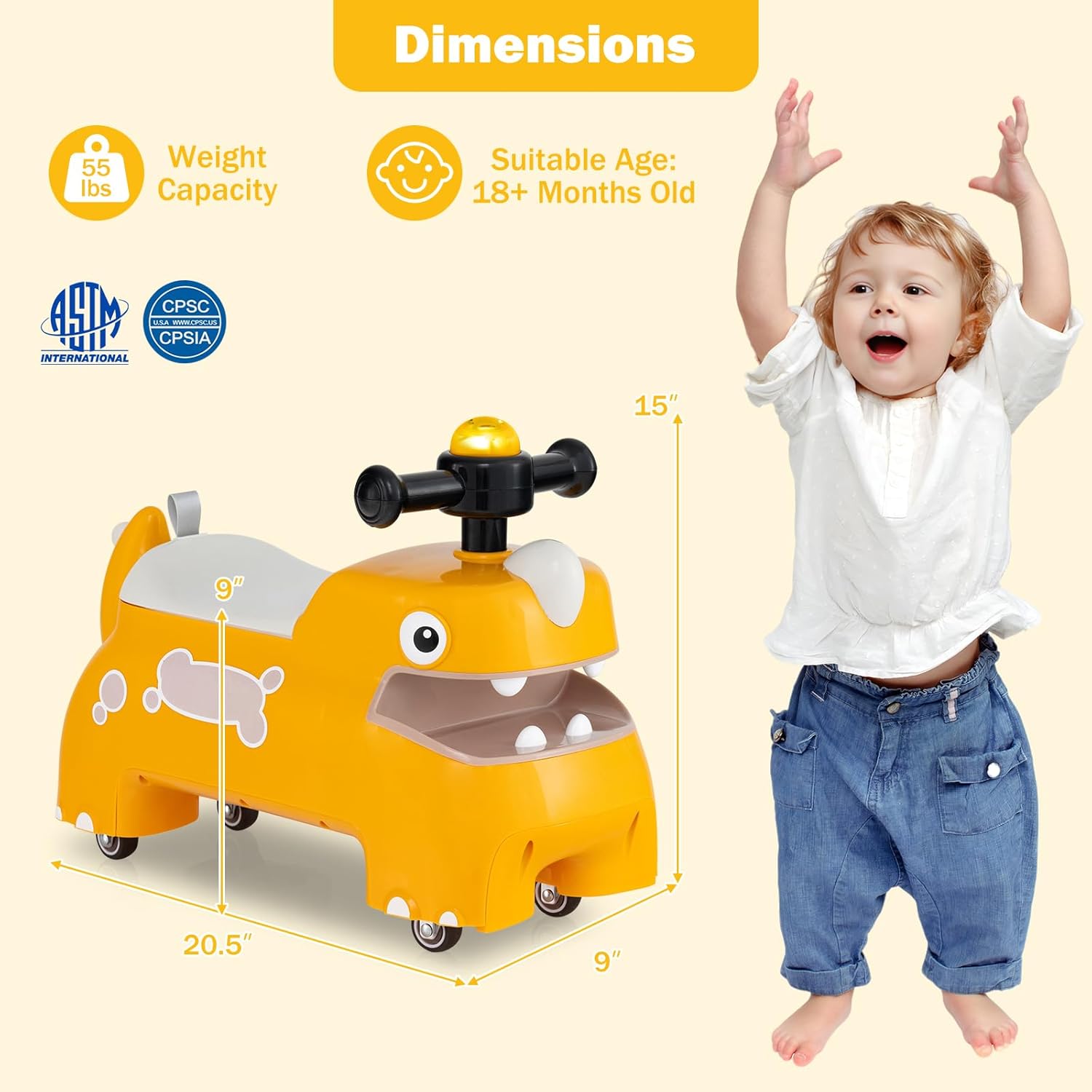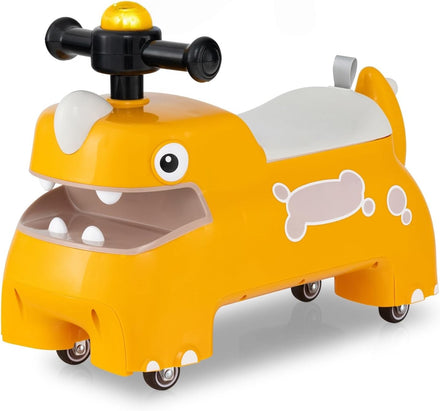 GLACER Ride On Push Car for Toddlers, Ages 18+ Months, Dinosaur Themed Foot to Floor Sliding Car with Music Steering, Horn & Under Seat Storage, Kids Ride On Toys for Boys and Girls (Yellow)