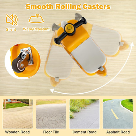 • Ultimate Stability & Safety for Kids: With a chassis just 1.6 inches off the ground and a 5-inch-wide integrated base, the center of gravity stays close to the surface. Four swivel wheels glide smoothly across hardwood floors, tiles, or short grass. The compact turning radius allows babies to move forward, backward, or sideways with light foot pushes, reducing tipping risks and protecting little ones.
