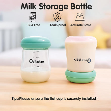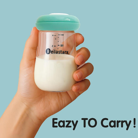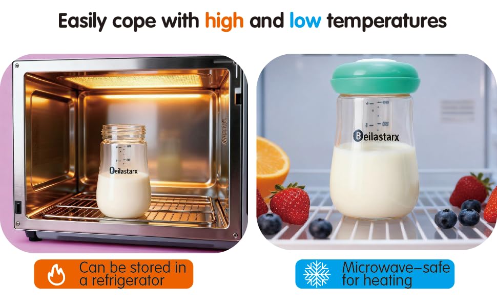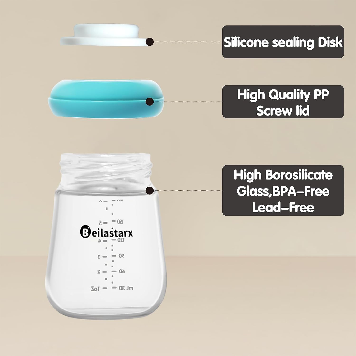 • Safe Material: Beilastarx glass breastmilk storage bottles are made of high-quality borosilicate glass, which is pure, clear and free of impurities, and does not contain BPA or BPS. It is heat-resistant and easy to clean and sterilize.